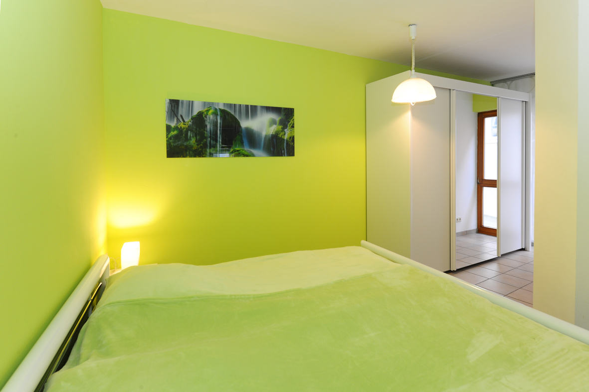 Doppelbett, Schrank, Safe, Betten sind bezogen, zusätzliche Decken und Kopfkissen auf Wunsch