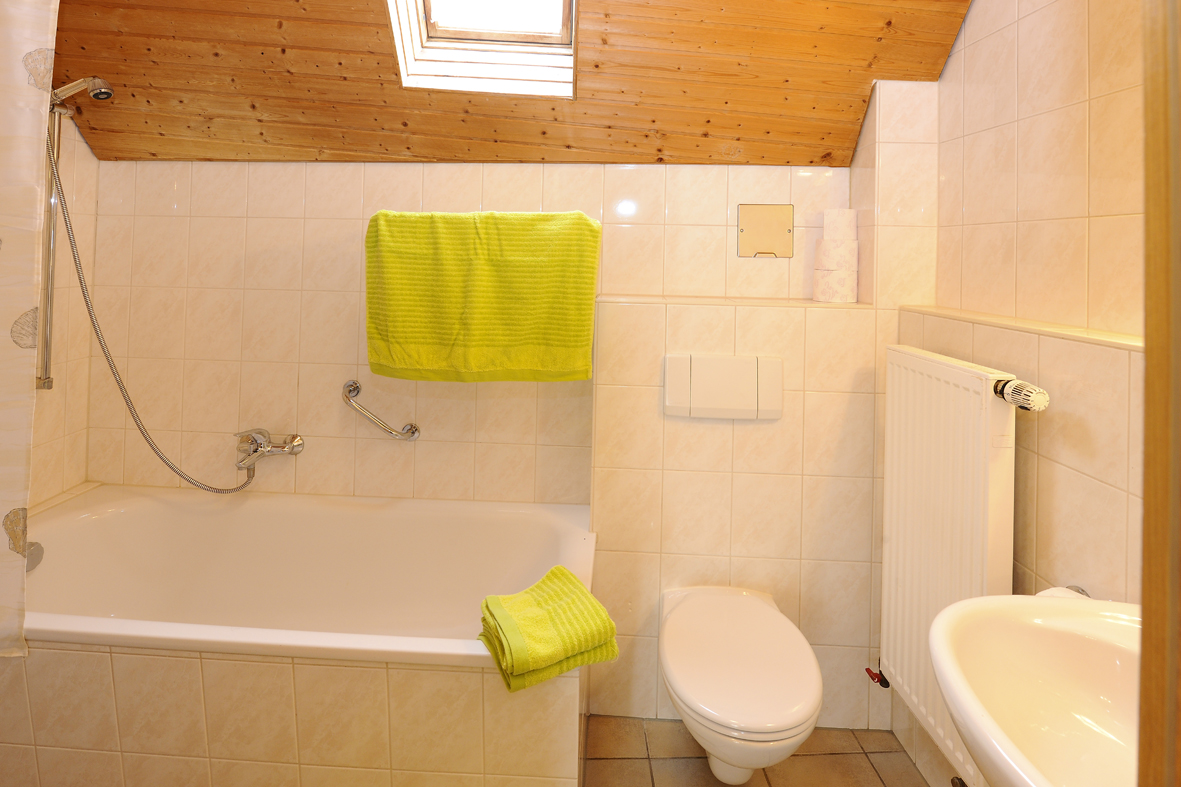 Wannenbad, WC, Föhn, Handtücher, Waschmaschine
